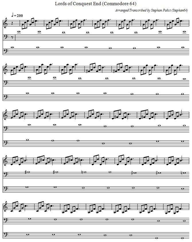 Musiknoten der Siegermelodien zum Spiel "Lords of Conquest"