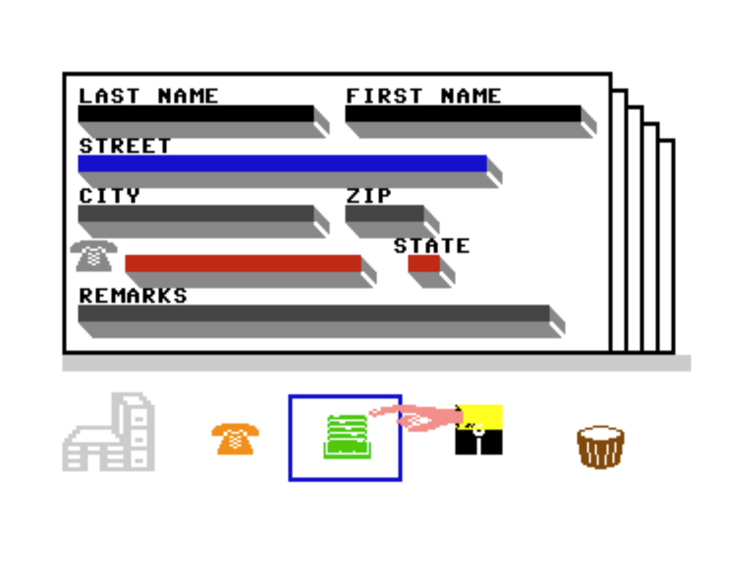 Adressverwaltung („Rolodex“) im Magic Desk II Prototyp auf dem Commodore 64.