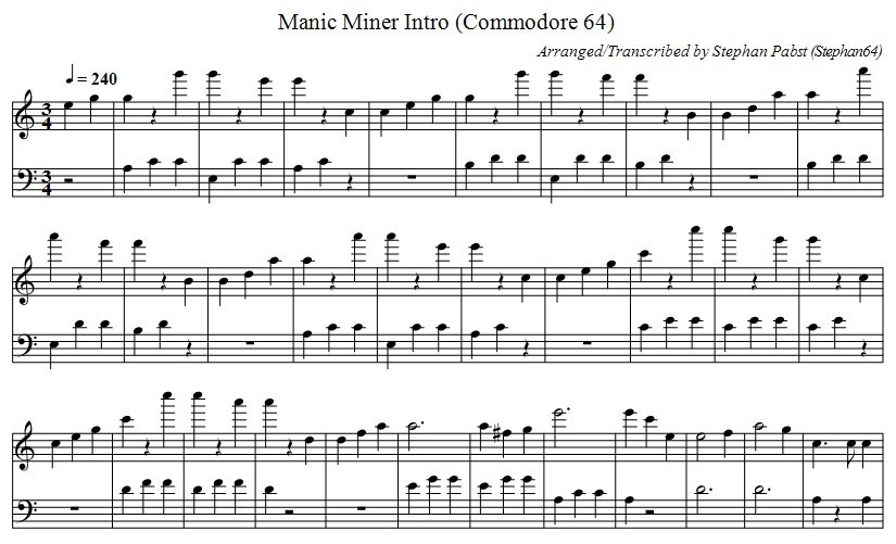 Musiknoten der Titelmelodie zum Spiel "Manic Miner"