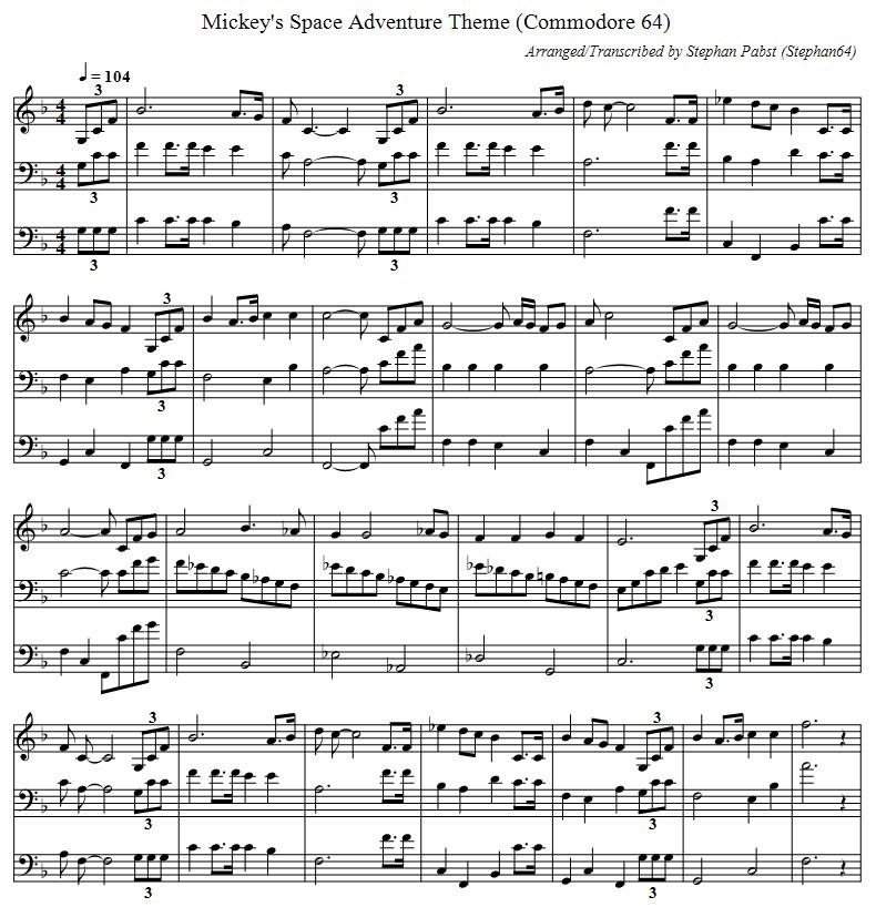 Musiknoten der Titelmelodie zum Spiel "Mickey's Space Adventure"