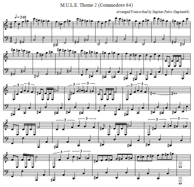 Musiknoten der zweiten Titelmelodie zum Spiel "M.U.L.E."