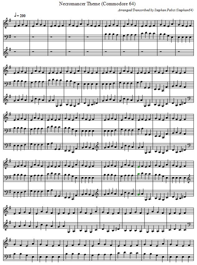 Musiknoten der Titelmelodie zum Spiel "Necromancer"