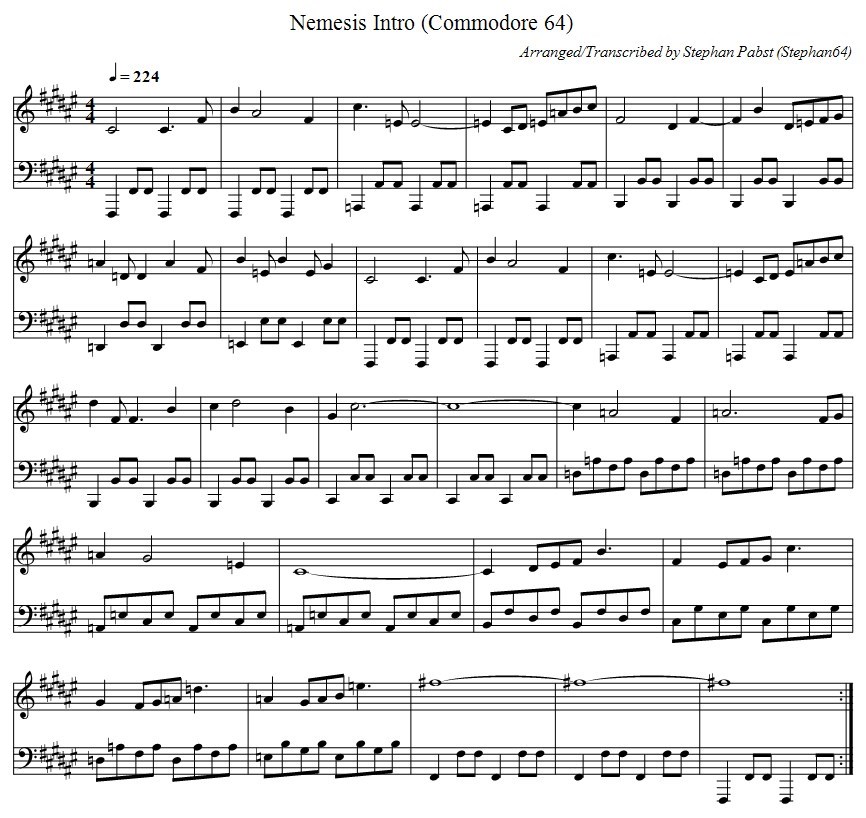 Musiknoten der Titelmelodie zum Spiel "Nemesis (Konami)"