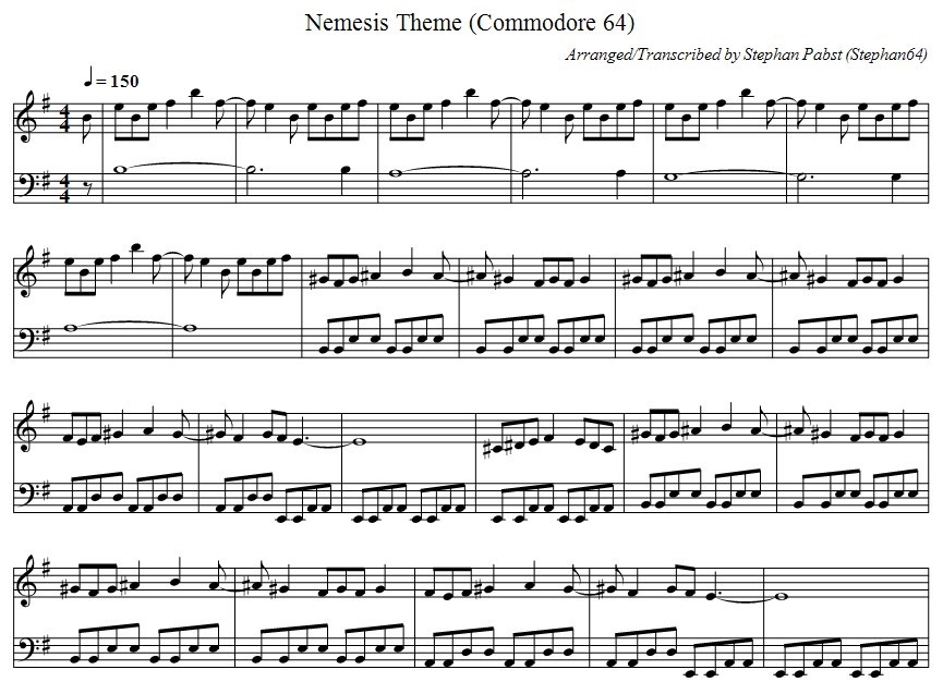 Musiknoten der Begleitmelodie zum Spiel "Nemesis (Konami)"