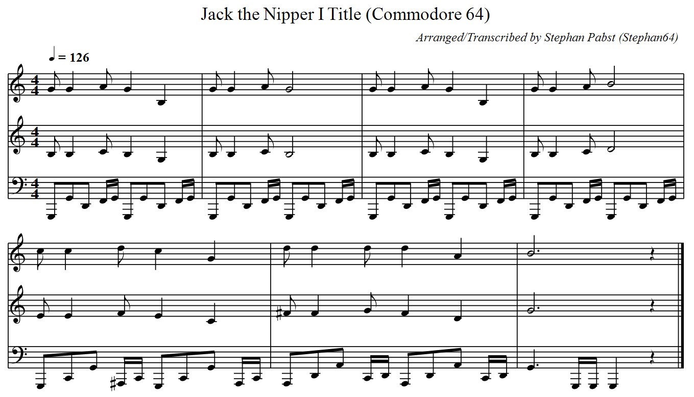 Noten der Titelmelodie zum Spiel "Jack the Nipper I"