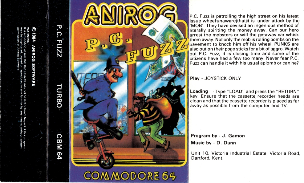 Inlay der Kassettenbox zum Spiel "P.C. Fuzz", Außenseite
