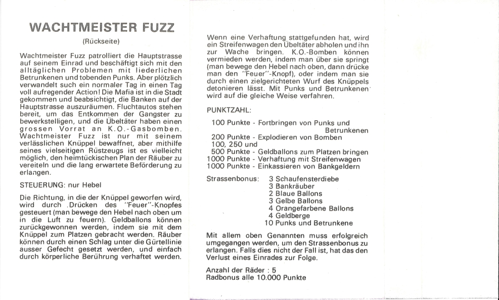 Inlay der Kassettenbox zum Spiel "P.C. Fuzz", Innenseite