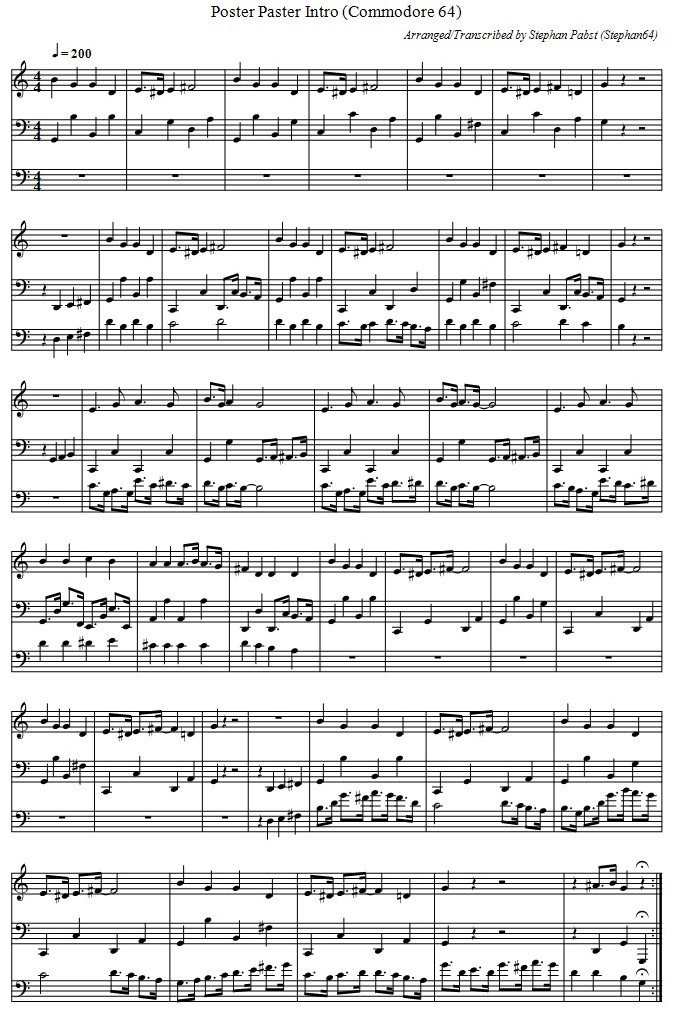 Musiknoten der Titelmelodie zum Spiel "Poster Paster"