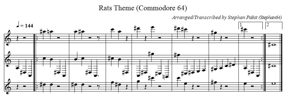 Musiknoten der Titelmelodie zum Spiel "The Rats"
