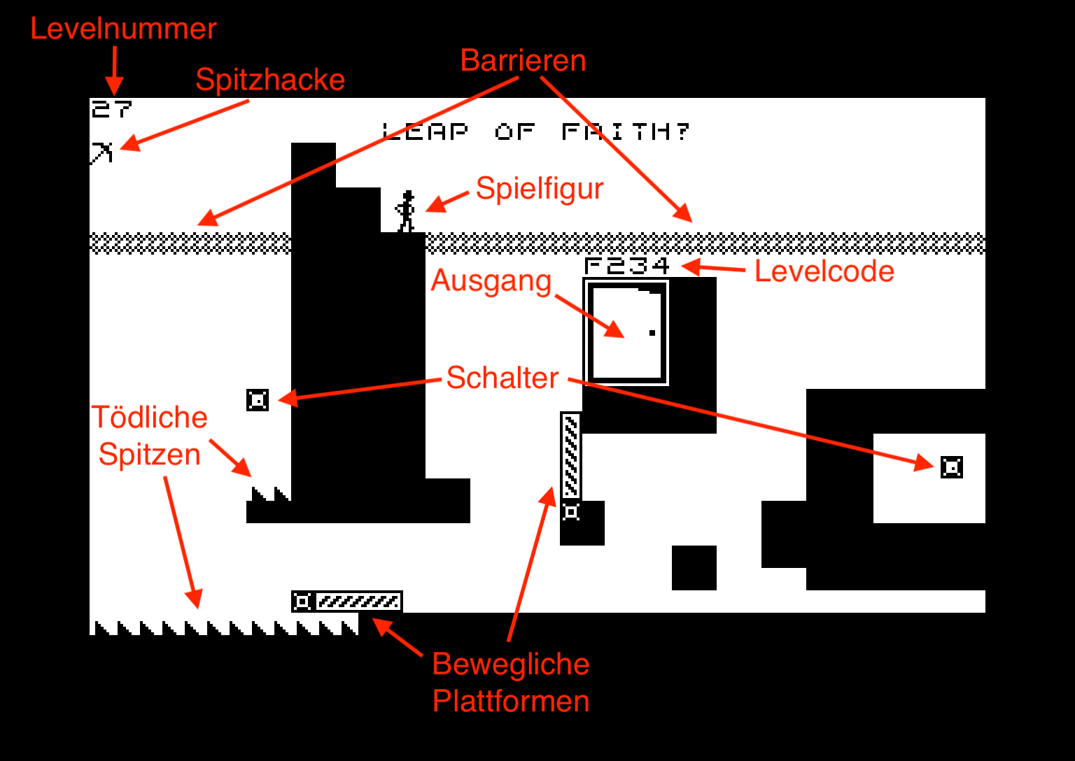 Bildschirmaufbau und Spielelemente des Spiels Shift