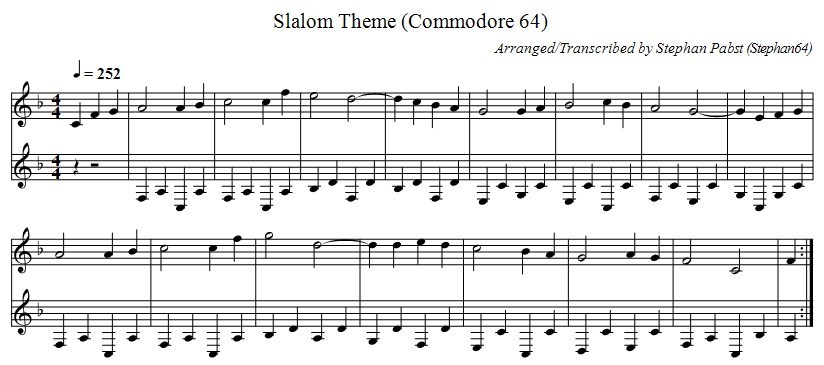 Musiknoten der Begleitmelodie zum Spiel "Slalom"