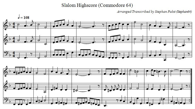 Musiknoten der Begleitmelodie zur Highscore-Tabelle im Spiel "Slalom"