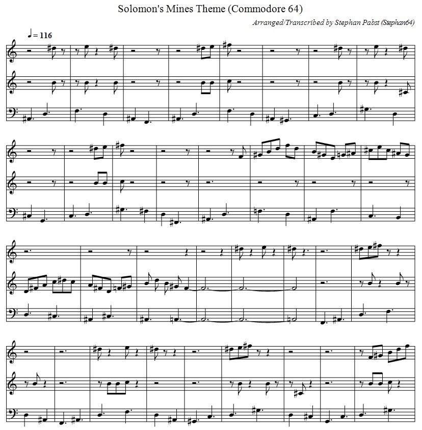 Musiknoten der Titelmelodie zum Spiel "The Search for King Solomon's Mines"