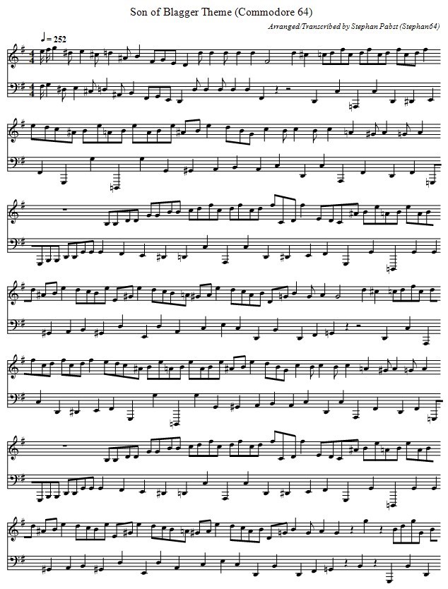 Musiknoten der Titelmelodie zum Spiel "Son of Blagger"