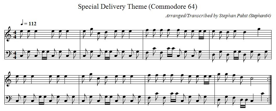 Musiknoten der Titelmusik zum Spiel "Special Delivery"