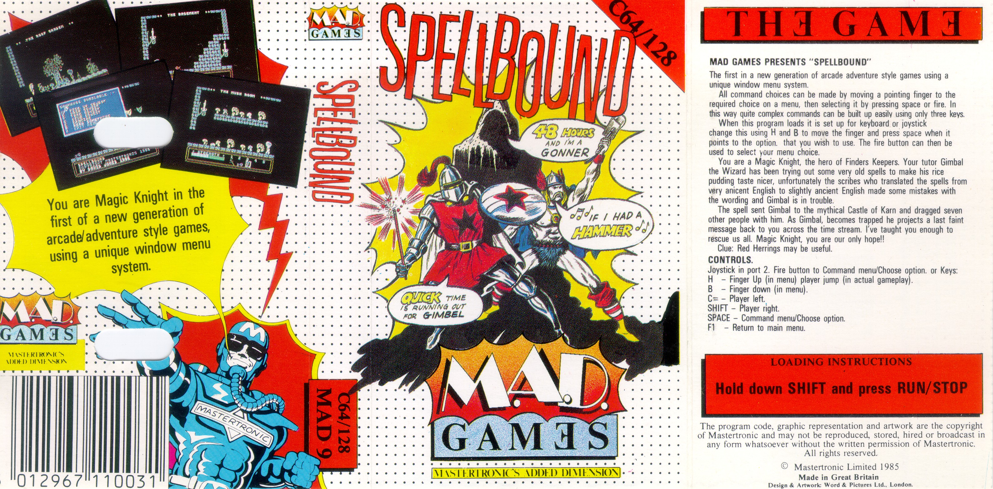 Außenseite des Inlay zum Spiel "Spellbound"