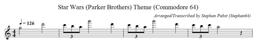 Musiknoten der Titelmelodie zum Spiel "Star Wars (Parker Brothers)