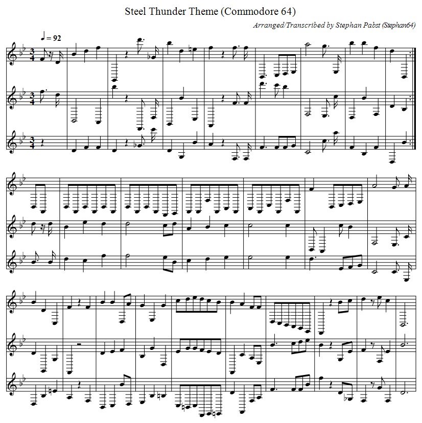Musiknoten der Titelmelodie zum Spiel "Steel Thunder"