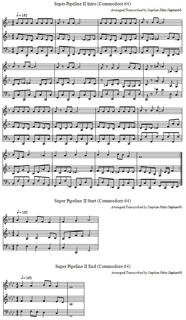 Musiknoten der Melodien aus dem Spiel "Super Pipeline II" (erster Teil)