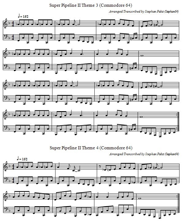Musiknoten der Melodien aus dem Spiel "Super Pipeline II" (dritter Teil)