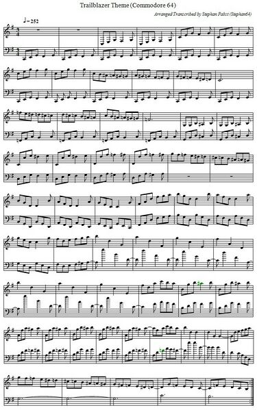Musiknoten der Titelmelodie zum Spiel "Trailblazer"