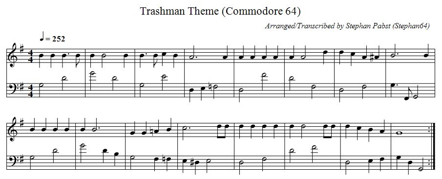 Musiknoten der Titelmelodie zum Spiel "Trashman"