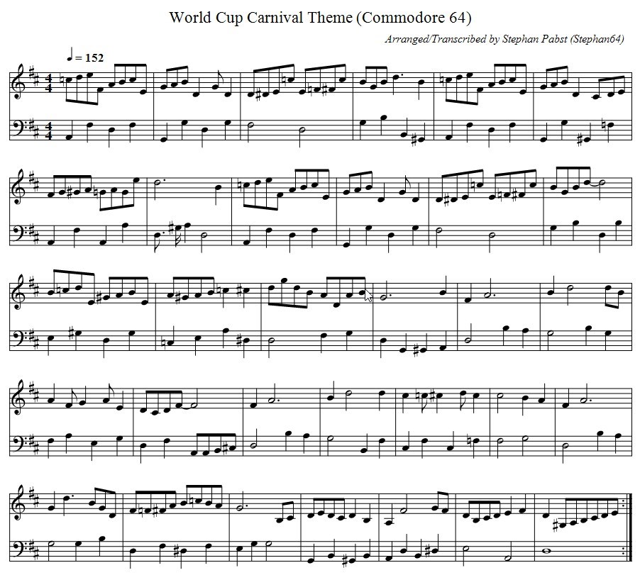 Musiknoten der Begleitmelodie zum Spiel "World Cup Carnival"