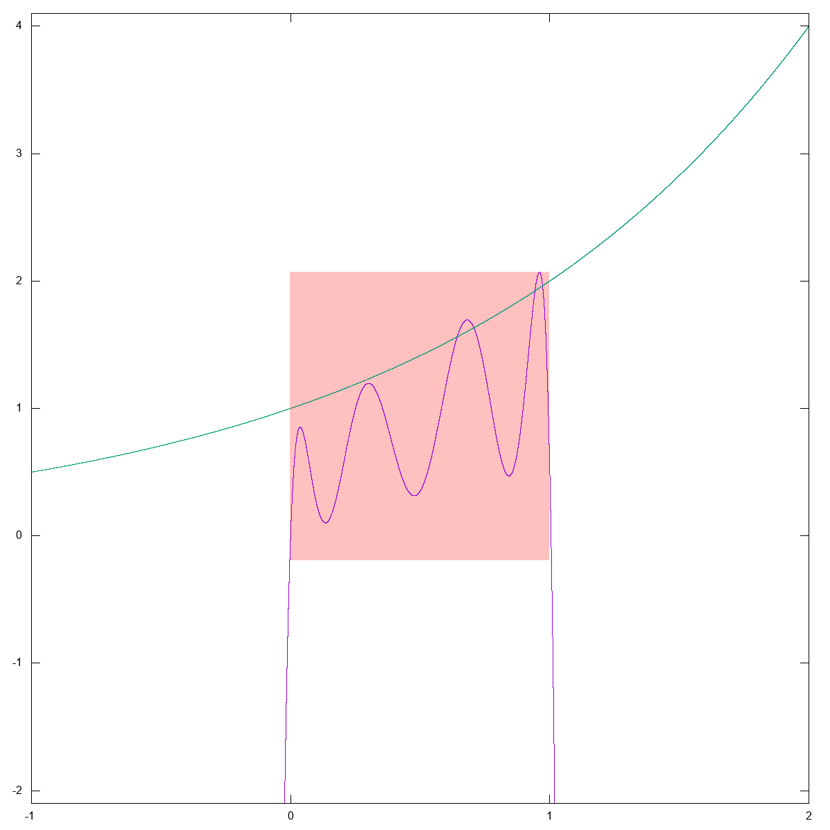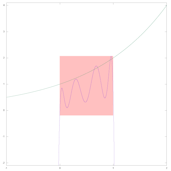 Abweichung zwischen 2^x und dem von EXP verwendeten Approximationspolynom, gestreckt um den Faktor 10^10