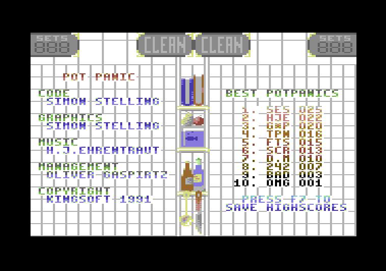 Pot Panic Startbildschirm bzw. Menü