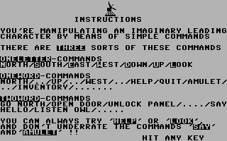 Gespielt wird dieses Textadventure durch die Eingabe von Einbuchstaben-, Einwort- und Zweiwort-Kommandos.
