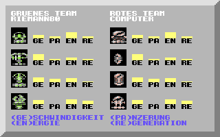 Domination ist eine Mischung auch Action- und Strategiespiel, bei dem zwei Spieler (Mensch oder CPU) mit 4er-Teams aus Robotern gegeneinander antreten.