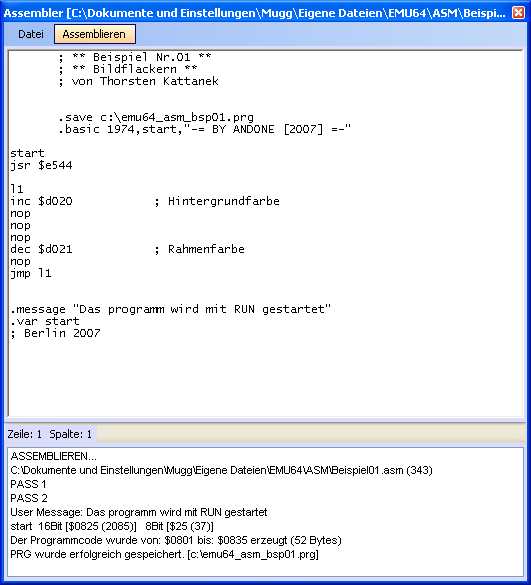 - Integrierter 2-Pass-Cross-Assembler mit Editor der am TurboAss angelehnt ist