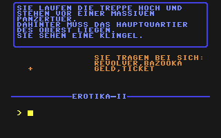 Erotik-Adventure mit leider so gut wie keinem Parser, Minimalhandlung und teilweise furchtbaren Zwischenbildern, eigentlich kein Adventure sondern eine Diashow, aber .... ;)