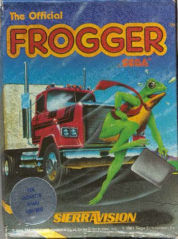 Bei dem Spiel Frogger geht es darum, Frösche über eine viel befahrene Verkehrsstraße und einen fließenden Bach mit Baumstämmen und Schildkröten in einen der fünf freien Plätze am oberen Bildschirmrand hüpfen zu lassen. Gefahren sind stets vorhanden: Autos überfahren den Frosch, das Verlassen des Bildschirms und der Sprung ins Wasser überlebt er auch nicht, usw.