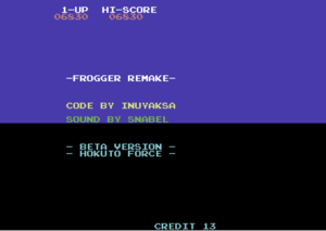 Frogger Arcade ist ein Frogger-Remake der Arcade-Version von Konami aus dem Jahr 1981 für den C64, dass die Spieleentwicklunsgruppe Hokuto Force erstmalig zu Weihnachten 2015 veröffentlicht hat. Am 24.12.2016 ist die Finalversion in der CSDb erschienen.