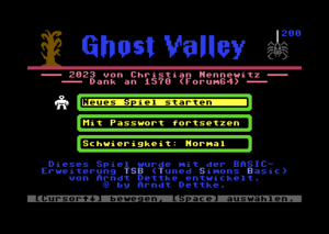 | Information | Spiel wurde komplett mit TSB (Tuned Simons' Basic) programmiert. Verschiedene Versionen (aktuell: V2.00) | |
