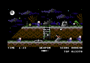Drei Jahre später wurde auch der Nachfolger "Ghouls 'n Ghosts" für den C64 umgesetzt, welches leider nicht an den großartigen Vorläufer herankam, obwohl die Automatenfassung selbst das Original noch weit übertraf.
