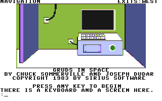 Ein umfangreiches Grafik/Text-Adventure mit vielen Rätseln, teilweise bewegter Grafik und einigen Soundeffekten. Und natürlich den knuddeligen kleinen grünen Gruds die "zufälligerweise" die Werbemaskotchen von Sirius Software sind.