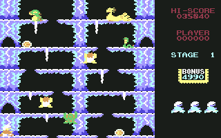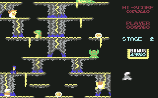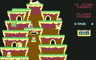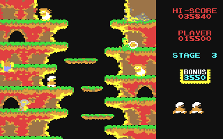 Es ist nicht möglich zu springen, man kann nur auf obere und untere Plattformen wechseln. Läuft man über den Rand einer Plattform oder springt von einer zu hohen Plattform herunter, verliert man ein Leben, wie auch bei der Berührung eines Gegners. Um einen Level zu verlassen, muss man zunächst alle Buchstaben (B und C) im Level einsammeln, und anschließend zum Sterz des großen Vogel am oberen Rand des Bildschirms gehen. Hat man vorher alles eingesammelt, wird man aus dem Level geflogen.