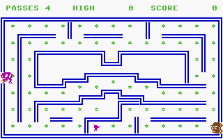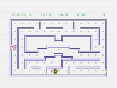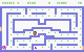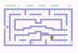 Während des Spiels wird der größte Teil des Bildschirms von dem aktuellen Labyrinth eingenommen, das stets als Ganzes zu sehen ist. Lediglich eine Textzeile am oberen Bildschirmrand informiert über den momentanen Spielstand. Die Darstellung ist sehr schlicht gehalten; beispielsweise wächst in den Parks nur eine einzige Sorte grün blühender Blumen. Die Labyrinthe wirken dadurch etwas eintönig, dank des weißen Bildschirmhintergrunds aber nicht so düster wie beispielsweise bei Pac Man.