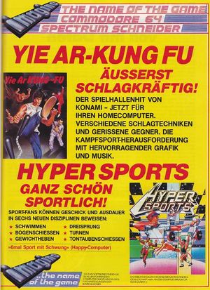 "Hyper Sports" ist eine gelungene Konvertierung des gleichnamigen Arcade-Automaten ohne der Sportart Stabhochsprung. Der Mehrspielermodus wurde leider ebenfalls entfernt. Die Grafik, die (teilweise lustigen) Animationen und das Scrolling wurden entsprechend umgesetzt. Eine tolle Titelmelodie und Soundeffekte bei den einzelnen Disziplinen runden das Spiel ab.