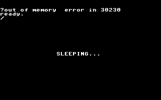 Da die einzelnen Programmteile, aus denen sich das Spiel zusammensetzt, in BASIC geschrieben sind, ist das Spiel anfällig für typische Laufzeitfehler dieser Programmiersprache: So wird während des Spiels die STOP-Taste nicht gesperrt, so dass ein versehentliches Betätigen zu einem Spielabbruch führt (linke Illustration der nachfolgenden Galerie, Fortsetzung durch Eingabe von CONT und Bestätigung mit der RETURN -Taste). Ferner ist der für Variablen zur Verfügung stehende Speicher nicht immer ausreichend für alle im Spiel verwendeten Strings, was gelegentlich einen ?OUT OF MEMORY ERROR zur Folge hat (mittlere Animation).