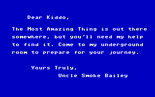 Zudem findet sich in der Anleitung ein schon etwas zerrissener Brief von Onkel Smoke Bailey, der hier ebenfalls in der deutschen Übersetzung wiedergegeben wird: