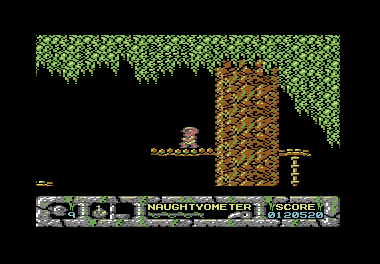 - Des weiteren kann auch Jack seine Windel als Fallschirm benützten. Wenn er in die Tiefe springt Joystick nach oben und Feuerknopf drücken. Dies ist eine sehr wichtige Funktion im Spiel, da man oft auf hohe Bäume klettern muss und den "Fallschirmtrick" mit der Windel beherschen soll um nicht zu viele Leben zu verlieren und schnell von den Bäumen zu kommen. Dies erfordert schon ein wenig Übung um den Fallschirmtrick zu beherrschen. Nicht jeder Sprung gelingt auf Anhieb und man landet mit der Nase auf dem Dschungelboden. Dabei ist das richtige Timing beim Absprung gefragt. Zuerst Abspringen dann ca. 1-2 Sekunden warten und dann die Windel benutzten (Joystick nach oben und Feuerknopf benutzen). So landet Jack sanft auf dem Boden.
