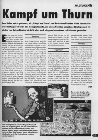 TheRyk: "Ich mag generell Risiko-Umsetzungen für den Computer (vermutlich weil beim Brettspiel kein Mensch gegen mich spielen mag) und bin natürlich ein Fan des großen Vorbildes Defender of the Crown. Kampf um Thurn ist spielerisch deutlich simpler gestrickt und die KI ist mindestens genauso dumm wie beim Vorbild. Trotzdem macht es mir gelegentlich Spaß, wozu vielleicht gerade der simple Charakter, aber auch die düsteren Grafiken beitragen, aber auch die Meanwhiles, die selbst den erfahrenen Spieler mit etwas Pech mal zum Stirnrunzeln bringen können. Schade, dass es ein komplett stummes Spiel ist. Aber für einen Heft-Release geht es voll in Ordnung, von mir gibt es gutgemeinte 6 Punkte."