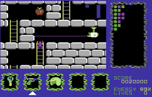 In kreativer Weise tummeln sich in dieser Welt, die einem riesigen Irrgarten gleicht, diesmal nicht vier verschiedenfarbige Gespenster, sondern niedliche Spaceshuttles, hüpfende Augen, eklige Spinnen, kleine Roboter und leckere Fledermäuse. Selbstverständlich ist auch alles mit Fallen gespickt - für Abwechslung ist also gesorgt. Jedenfalls muss der Held, in dessen Rolle wir uns in dem Spiel versetzen, dem Labyrinth entkommen (um in Falle von Nebraska Joe "die großen Agrarmanöver", wie er zuletzt das Rosenschneiden nannte, abzuschließen). Jegliche Ähnlichkeit mit dem bekanntesten Archäologen der Filmgeschichte ist sicherlich nur dummer Zufall. Sein Job ist allerdings nicht leichter: Mittels Hüpfen, Erklimmen von Leitern, und dem Sammeln von Schlüsseln und Ausrüstung arbeitet er sich wacker durch die feindselige Umgebung.