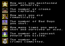 Als Sheriff von Gold Gulch, einer Kleinstadt im Wilden Westen, sorgt der Spieler für Ordnung. Allerdings springt dieser Sheriff nicht wild um sich ballernd über Dächer und fahrende Waggons, sondern redet erst einmal, bevor er den Revolverhelden die Birne wegpustet. Ja, Reden bildet den Hauptteil des Spiels. Pro gegenüber gibt es je 3 Gesprächsphasen mit je 4 Antwortmöglichkeiten (+ Revolver), so dass man hier auf die nette Zahl von 64 möglichen Enden pro Gespräch kommt (lässt man die vorzeitige Beendigung des Gespräches mal weg). Die Handlung ist aber nicht nur linear - mitunter gibt es Überraschungen, wenn ein friedlich davonziehender Bösewicht es sich plötzlich anders überlegt, wenn der Doc sich lieber der Flasche widmet, als den Sheriff zusammenzuflicken oder sich gar eine Romanze anbahnt. Das Spiel bietet zudem die Möglichkeit, der Kapitalflucht in Gold Gulch ein Ende zu bieten, indem man Bankräuber in ihre Grenzen verweist. Auch für die Pistoleros unter uns bietet das Spiel einige Betätigungsmöglichkeiten, denn nicht alle Antworten halten einer strengen Prüfung unter ethischen Gesichtspunkten stand.