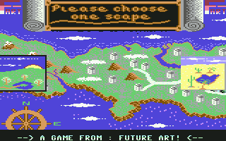 Achtung: Auf der Masterdisk kann immer nur eine eigene Landkarte gespeichert sein! - 1 - 0 : Laden einer Landkarte (1 - 10) von einer Datendisk und sofortiger Neustart des Spieles mit der neuen Landkarte.