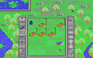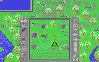 Um eine eigene Landkarte zu erstellen, ist der Menüpunkt "Terrain Editor" anzuwählen. Danach wird die Landkarte von der Lords- Masterdisk geladen. Beim ersten Ladevorgang ist das eine Karte mit nur Land (wenn eine Landschaft zum Spielen gestartet wird, werden von selbst einige Bauten eingesetzt). Diese Landkarte kann nun bearbeitet werden. Das geschieht durch einmaliges Drücken einer Objekttaste (Belegung siehe unten). Nun kann man das so gewählte Objekt mit der linken Maustaste (bzw. dem Joystickknopf) aufbauen. Wenn die Landkarte fertiggestellt ist, ist eine entsprechende Bedienungstaste (Belegung siehe unten) zu betätigen.