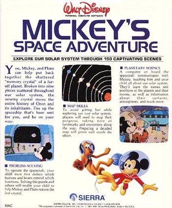 Roberta Heuer Williams, die als eine der bekanntesten Entwicklerin im Bereich der Grafikadventures gilt und die Firma On-Line Systems, die später unter dem Namen Sierra On-Line bekannt wurde, gründete, schloss sich am Anfang ihrer Karriere mit Disney zusammen, um zwei Spiele zu erstellen: "Mickey's Space Adventure" und "The Black Cauldron". Beide wurden 1984 veröffentlicht und halfen als Sprungbrett zu ihrer steilen Karriere. "Mickey's Space Adventure" wurde damals als Adventure-Lernsoftware für Kinder konzipiert, um Kenntnisse über das Sonnensystem zu erlangen. Al Lowe, bekannt für die Reihe "Leisure Suit Larry", die für einen handfesten Skandal auf dem amerikanischen Computerspielemarkt sorgte, steuerte die Musik (PC-Version) bei.